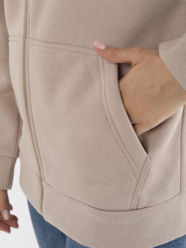 Модель на молнии с капюшоном и большими передними карманами. Прямой крой и спущенная линия плеч создают свободный силуэт, не сковывающий движений. Отлично сочетается с джинсами, спортивными брюками и легинсами.