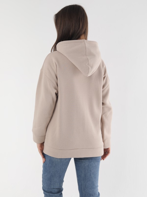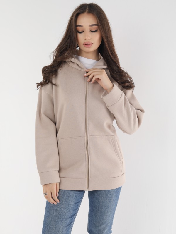 Уютная и стильная худи в базовом бежевом оттенке — идеальный выбор для повседневной носки. Выполнена из мягкого трикотажа с лёгким утеплением, обеспечивая комфорт в прохладную погоду.