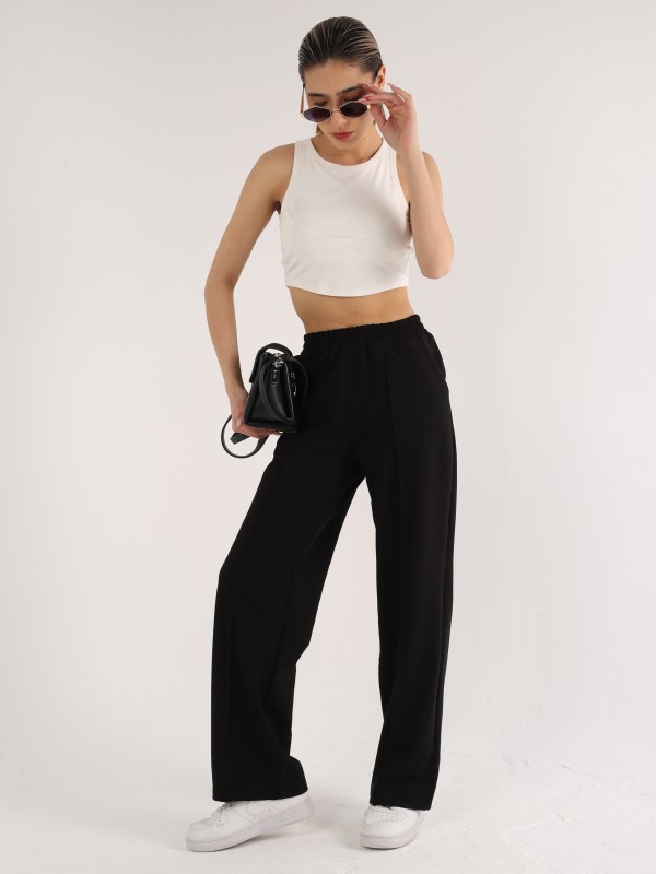 Стильные и универсальные чёрные брюки прямого кроя — must-have для базового гардероба. Лёгкий, мягкий материал, свободная посадка и эластичный пояс делают их идеальными как для повседневной носки, так и для более собранных, деловых образов. Сочетаются с топами, рубашками, худи и жакетами.
