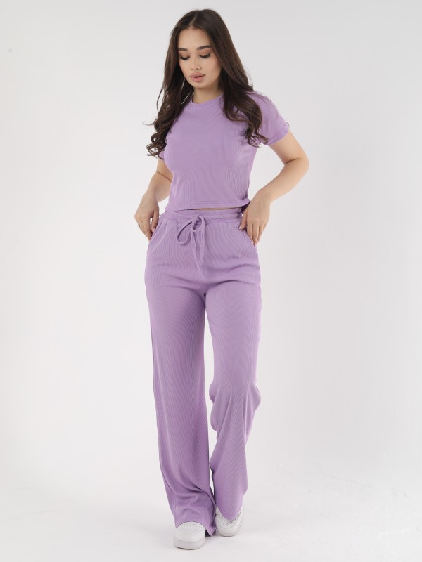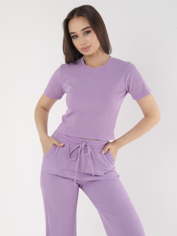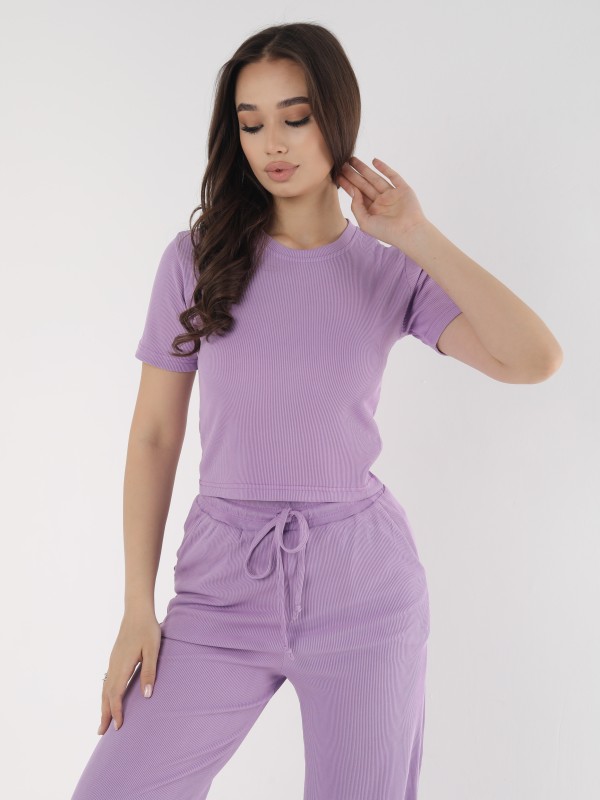 Женский костюм из рибаны — футболка и брюки, лаванда
