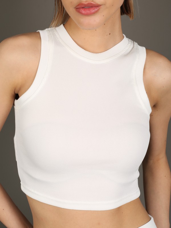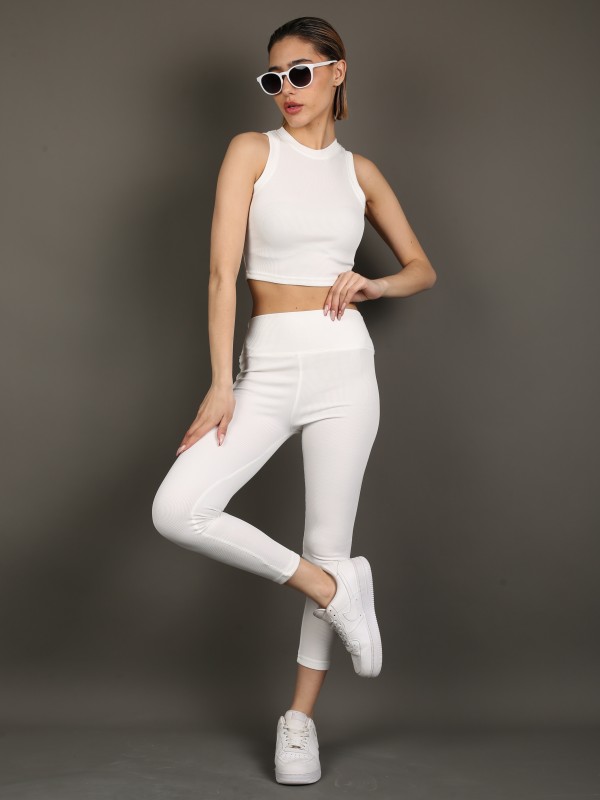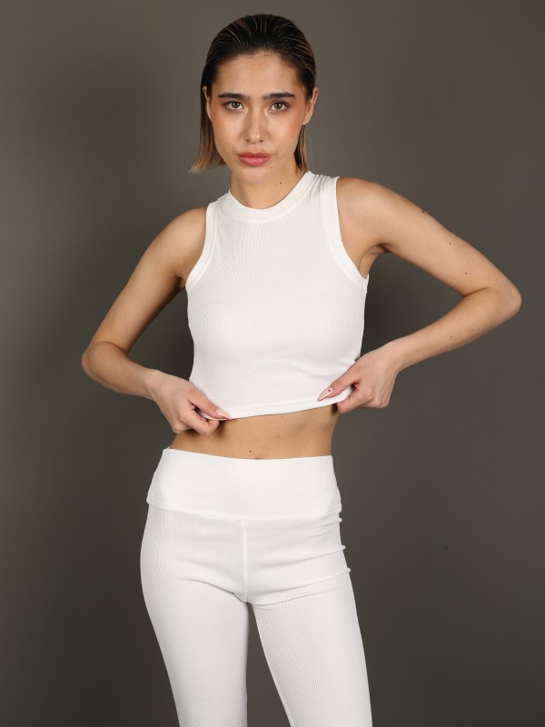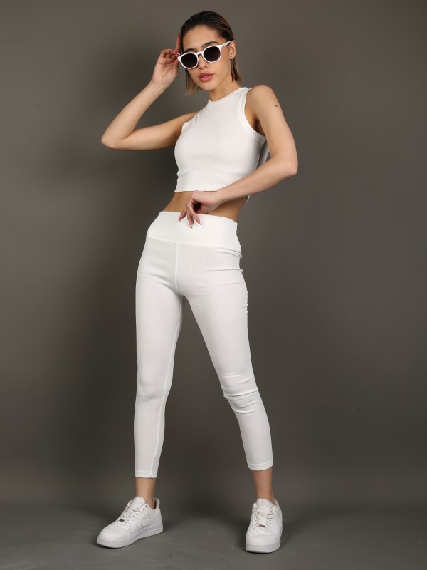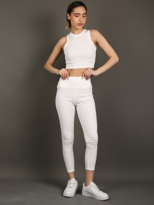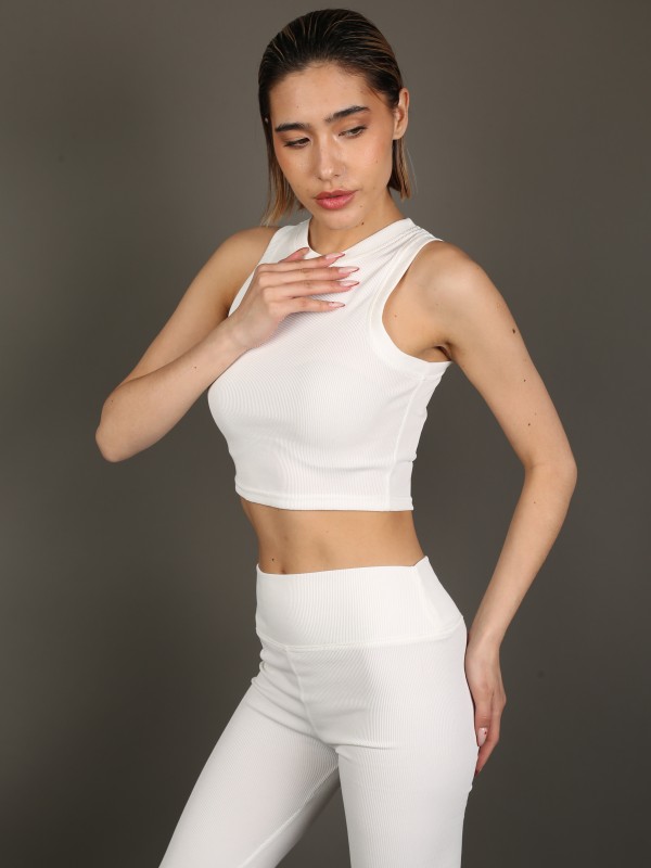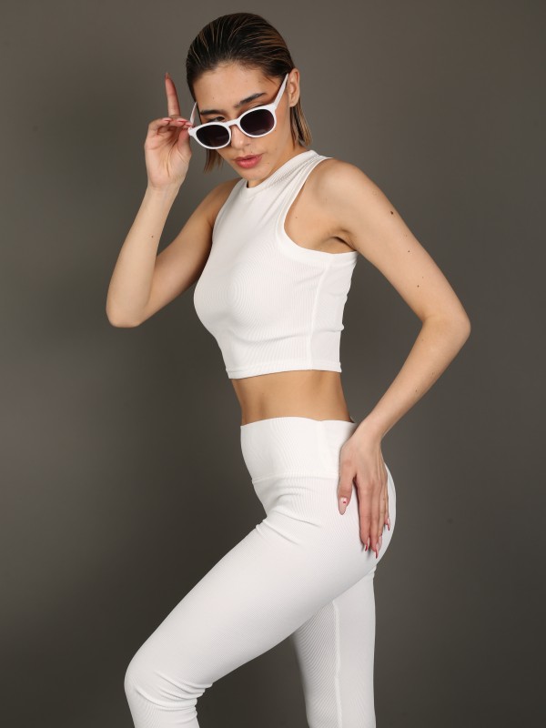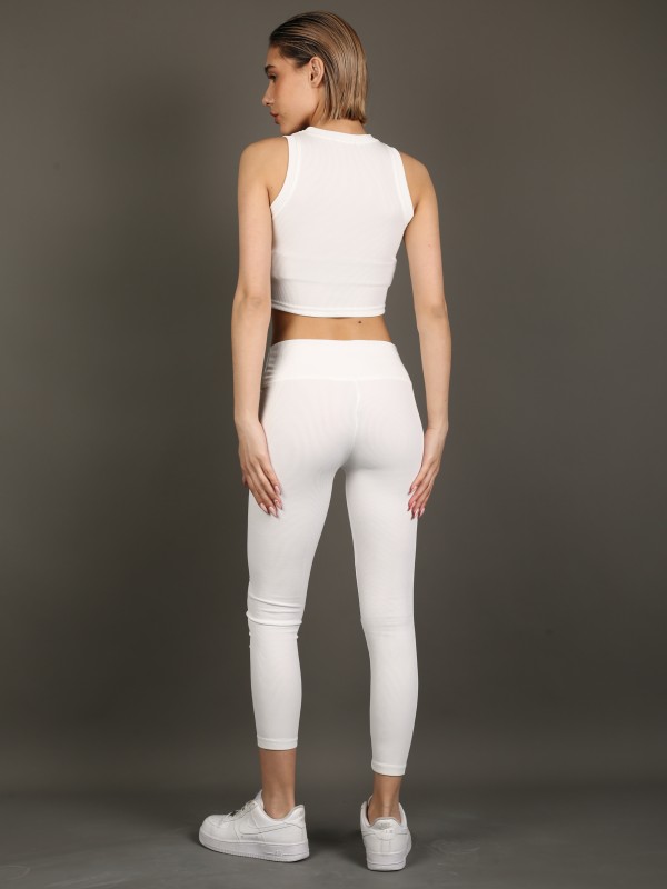 Стильный и универсальный комплект в классическом белом цвете. В комплект входят укороченный топ без рукавов и облегающие леггинсы с высокой посадкой. Эластичный трикотаж с лёгкой рельефной фактурой идеально садится по фигуре, обеспечивая комфорт и свободу движений.