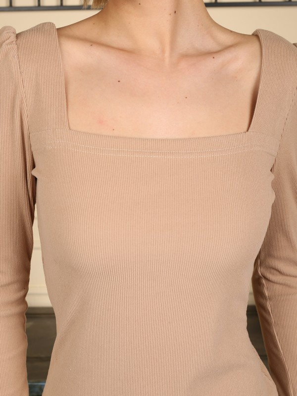 Особенности: квадратный вырез, длинные рукава, эластичная ткань