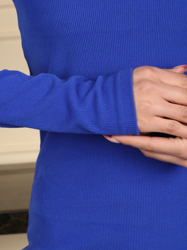 Изящное платье насыщенного синего цвета в длине миди — стильная основа для вечернего или офисного образа. Приталенный фасон подчёркивает фигуру, а квадратный вырез добавляет нотку элегантности. Длинные рукава и мягкий трикотаж обеспечивают комфорт и утончённый вид.