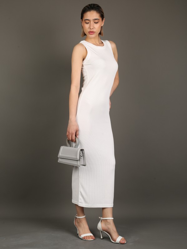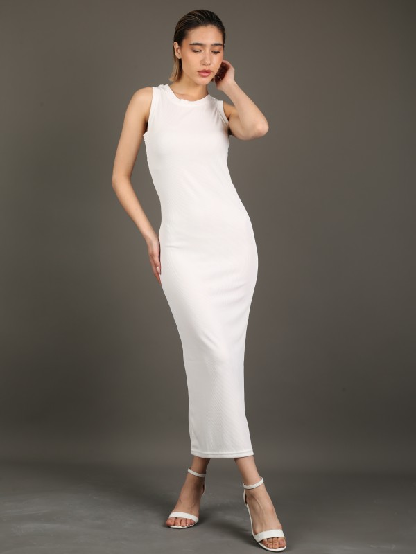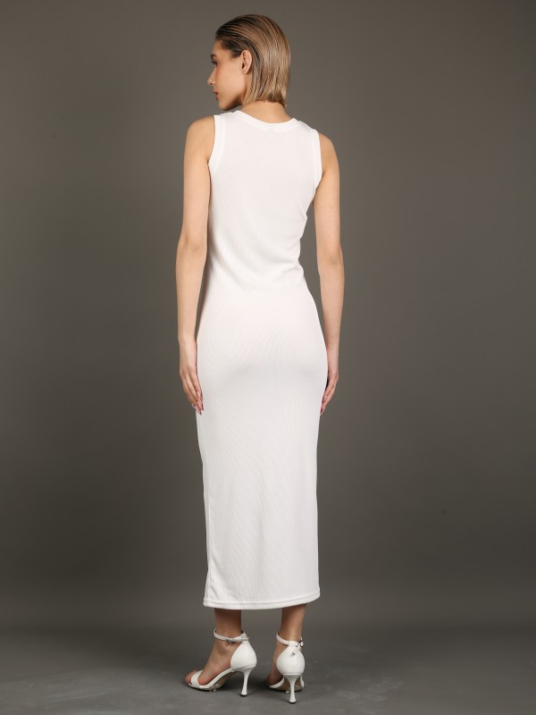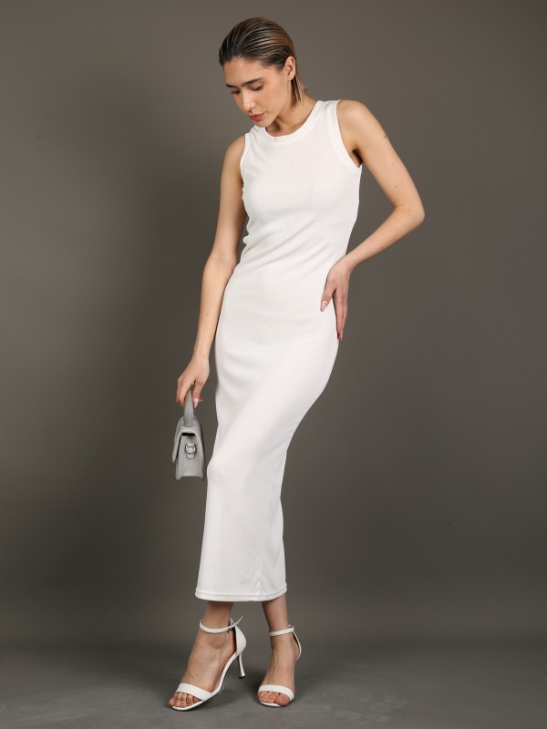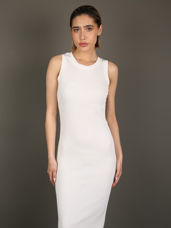 Лаконичное белое платье без рукавов в длине макси — элегантный выбор для лета. Облегающий крой подчёркивает фигуру, а мягкий трикотаж с эластичной текстурой дарит комфорт при движении. Универсальная модель для прогулок, вечеринок и стильных повседневных образов.