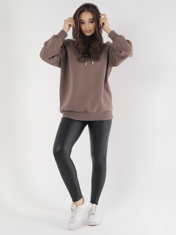 Стильное и универсальное худи в трендовом шоколадном оттенке — идеальный выбор для прохладных дней. Модель выполнена из мягкого трикотажа с начёсом, который сохраняет тепло и обеспечивает максимальный комфорт. Классический капюшон, манжеты на резинке и свободный крой делают худи практичным и модным элементом гардероба.